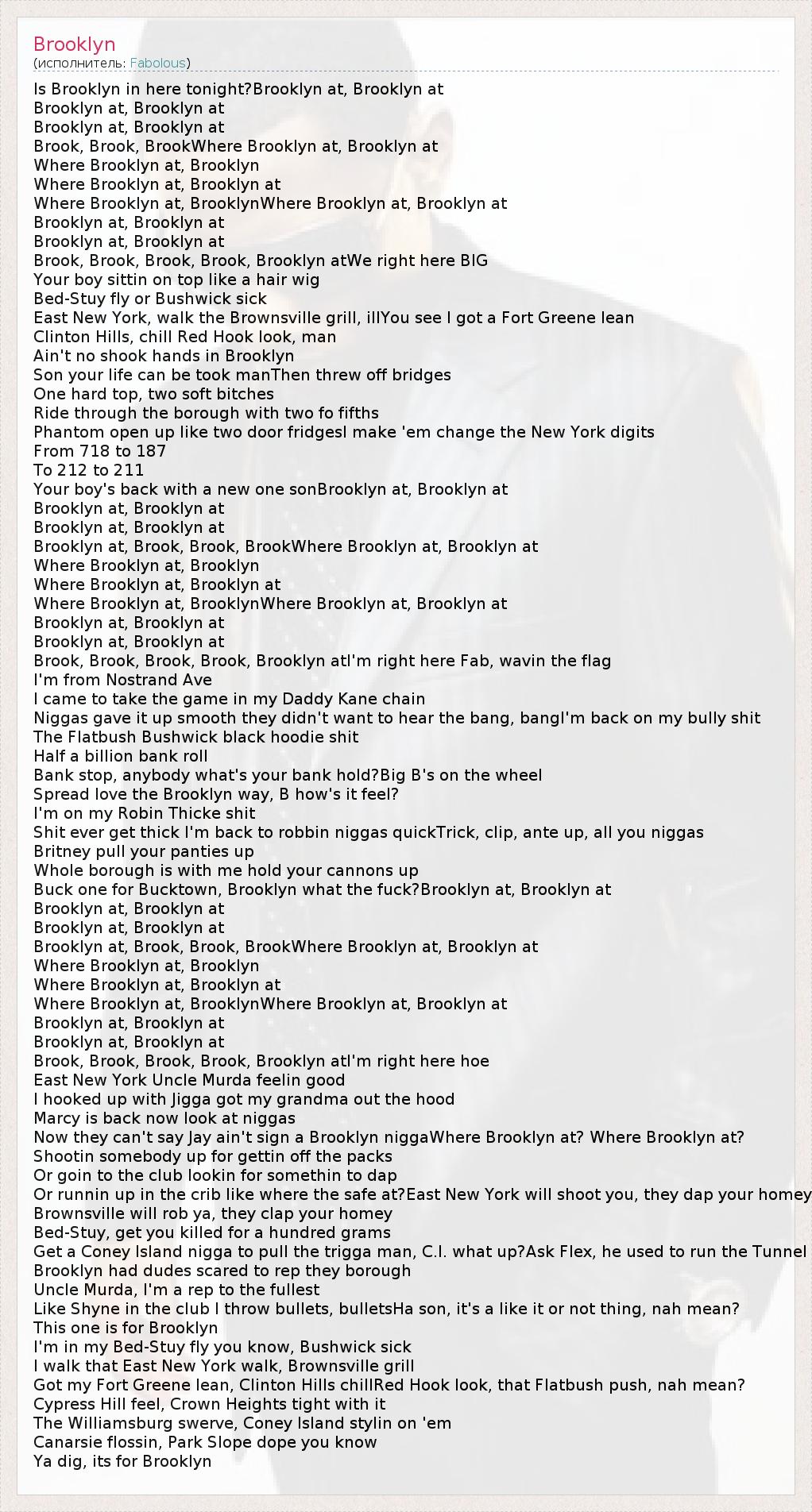Brook, Brook, Brook, Brook, Brooklyn atI'm right here Fab, wavin the flag
