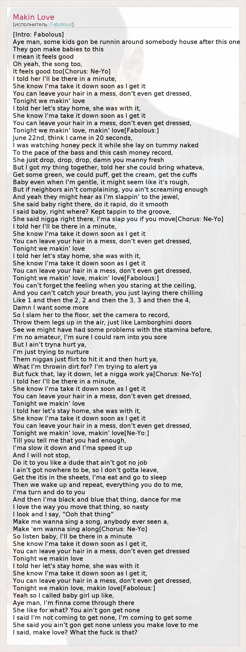 Tonight we makin' love, makin' love[Ne-Yo:]