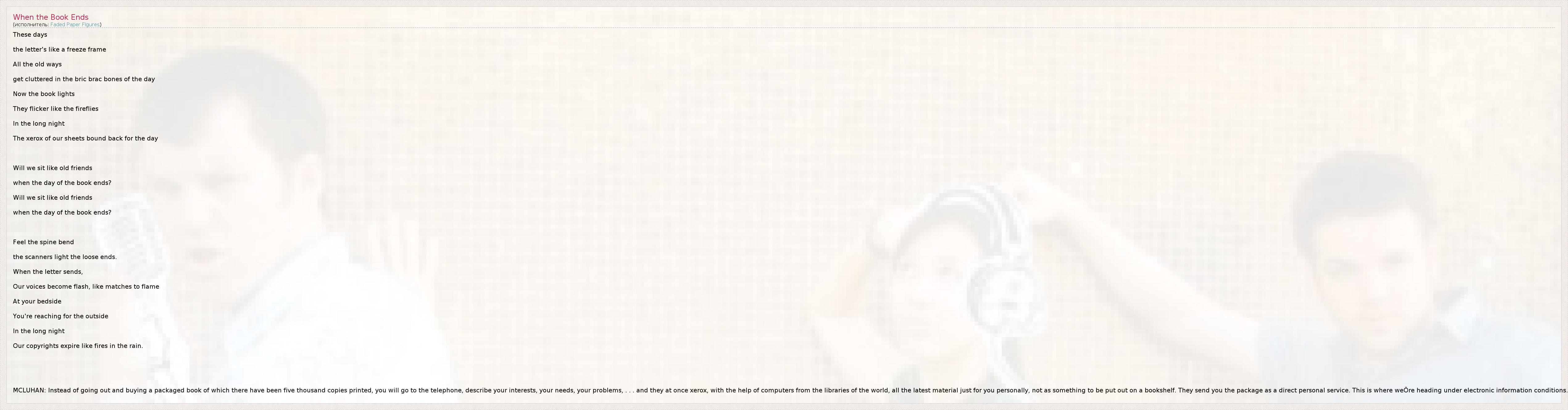 А как ты думаешь, о чем песня "When the Book Ends" ?