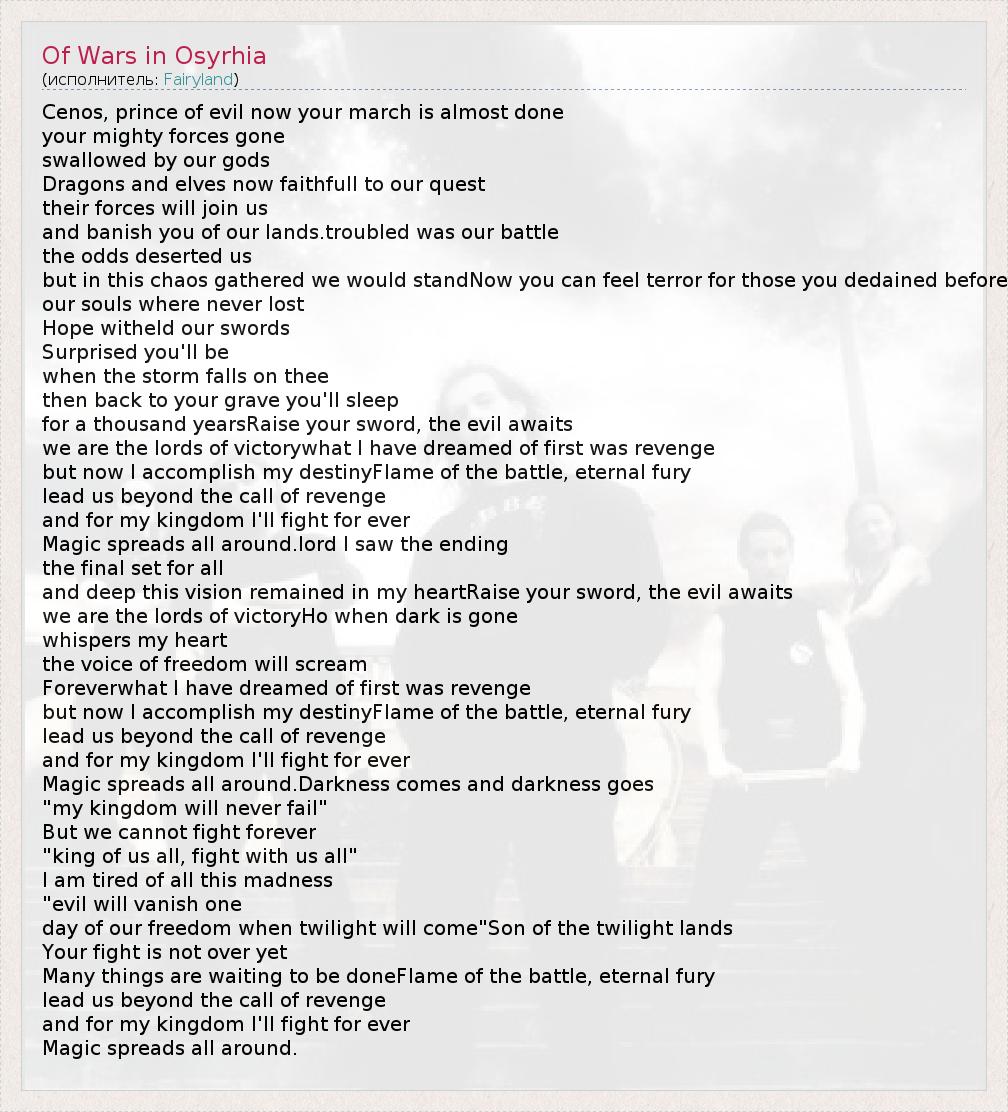 А как ты думаешь, о чем песня "Of Wars in Osyrhia" ?