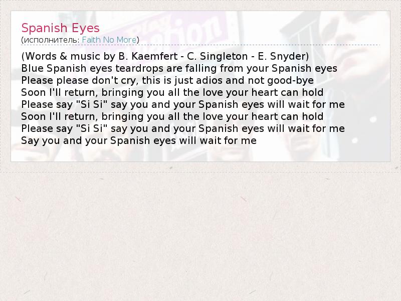 А как ты думаешь, о чем песня "Spanish Eyes" ?