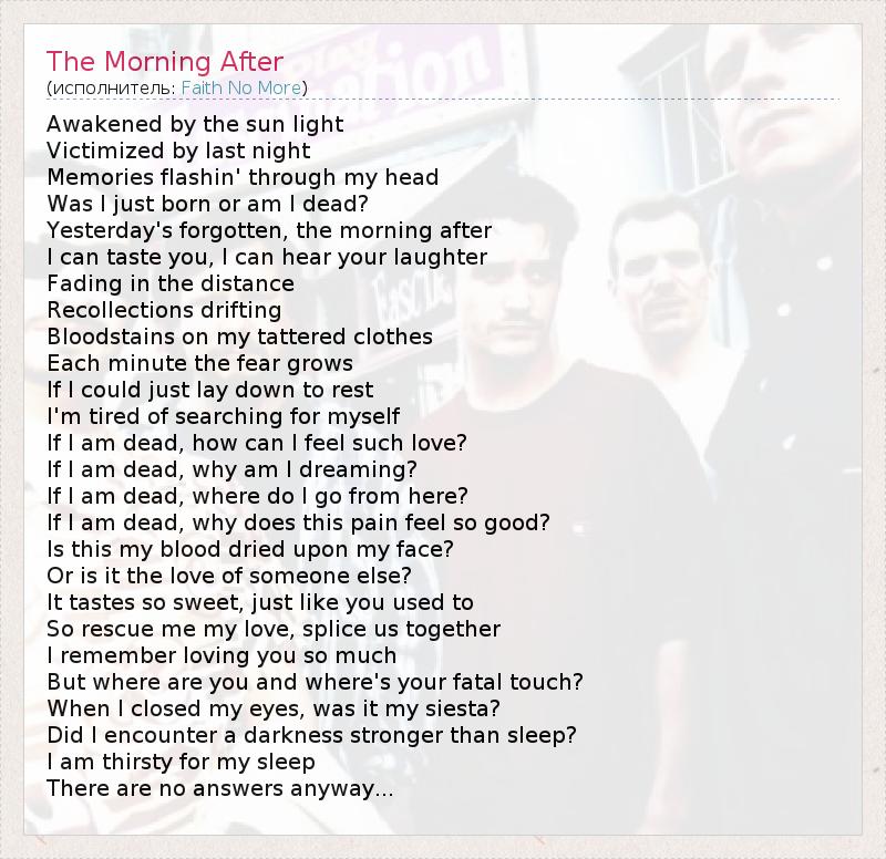 Это интересно:В 1981 году музыканты из Калифорнии Майк "Паффи" Бордин, Билли Гулд, Майк Моррис и Уэйд Уортингтон создали группу под названием Faith No Man. Годом позже Уортингтона заменил клавишник Родди Боттум, а Майка Морриса по прозвищу Мужик (The Man) выгнали, и группа переименовала себя в Faith No More. После того, как группа перепробовала несколько вокалистов, среди которых была и Кортни Лав, в 1983 году выбор... продолжение