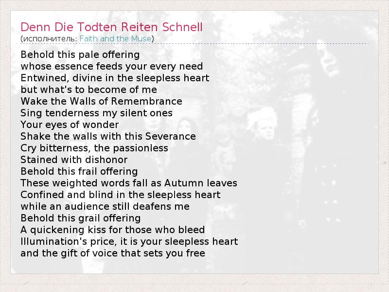 ГлавнаяИсполнителиFaith and the MuseDenn Die Todten Reiten Schnell