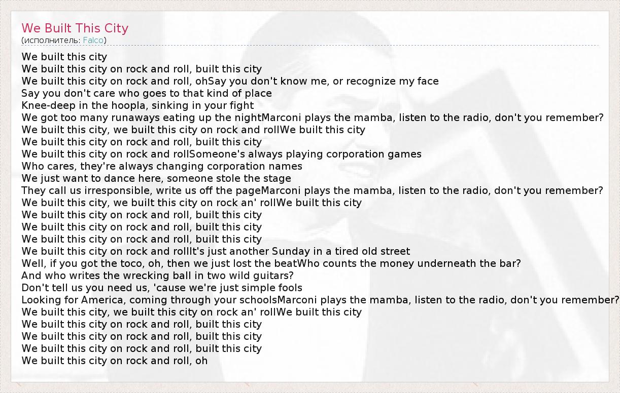 We built this city on rock and roll, ohSay you don't know me, or recognize my face