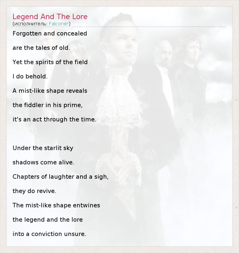 А как ты думаешь, о чем песня "Legend And The Lore" ?