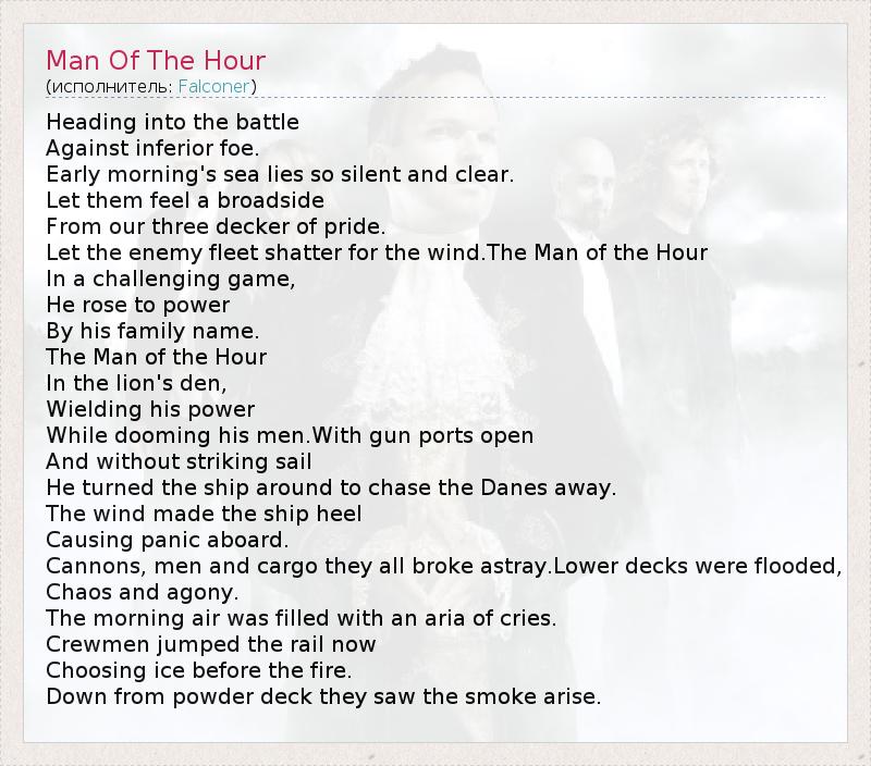 А как ты думаешь, о чем песня "Man Of The Hour" ?