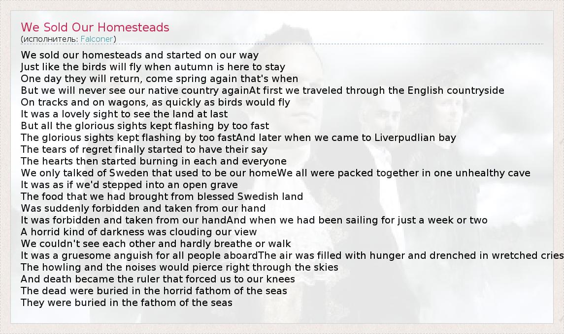 ГлавнаяИсполнителиFalconerWe Sold Our Homesteads