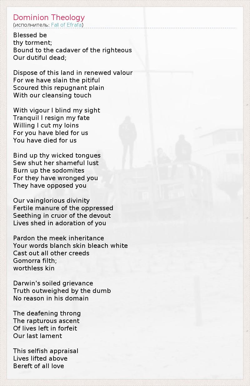 А как ты думаешь, о чем песня "Dominion Theology" ?