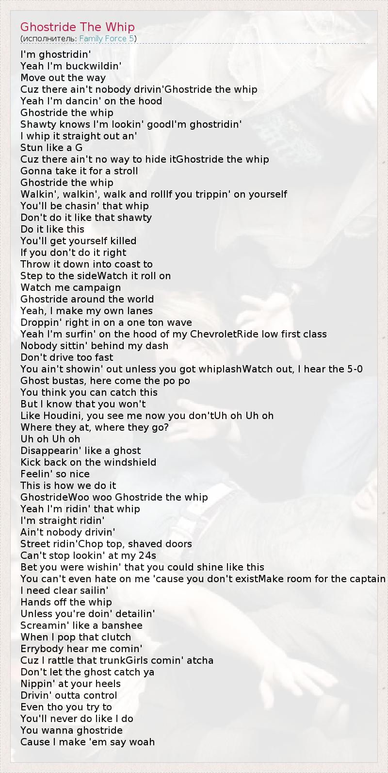 А как ты думаешь, о чем песня "Ghostride The Whip" ?