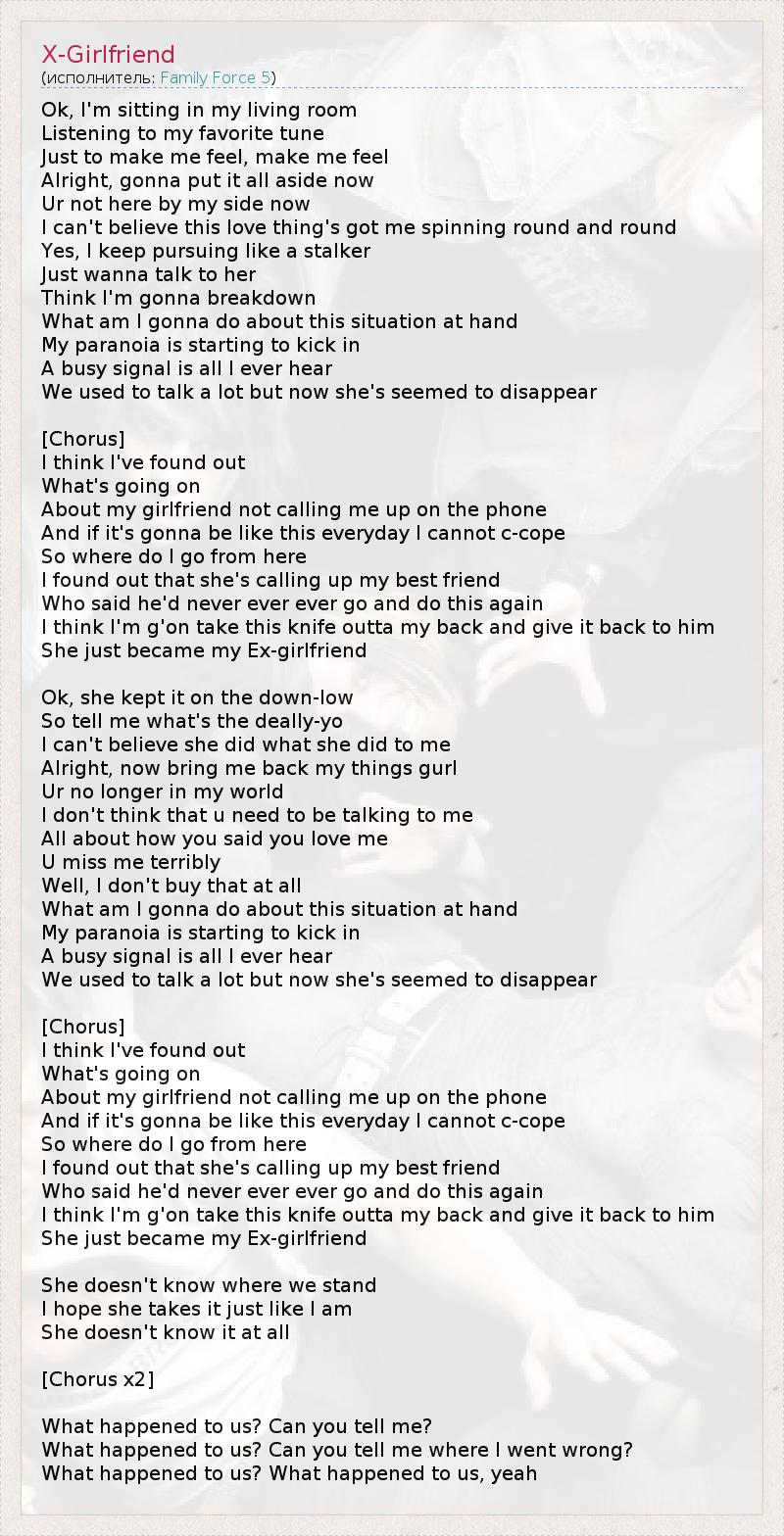 А как ты думаешь, о чем песня "X-Girlfriend" ?