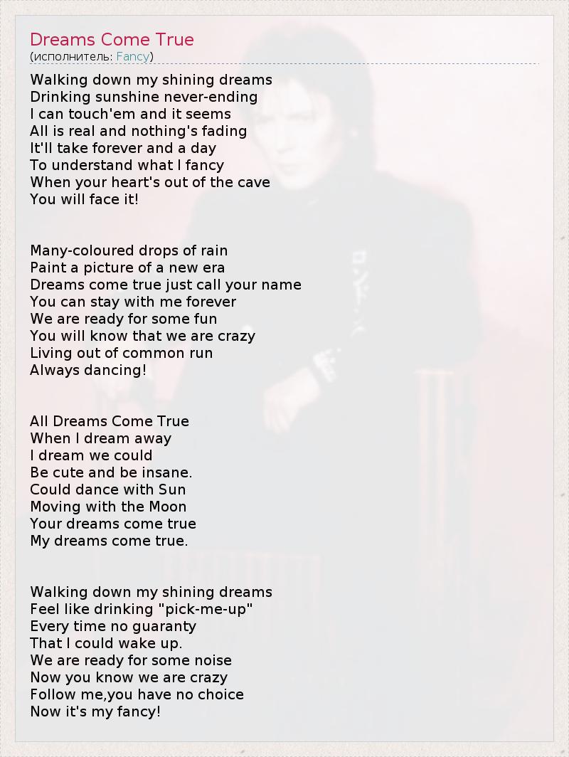 А как ты думаешь, о чем песня "Dreams Come True" ?