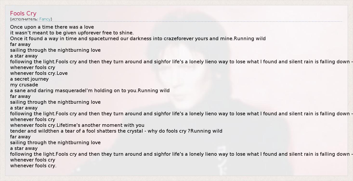 А как ты думаешь, о чем песня "Fools Cry" ?