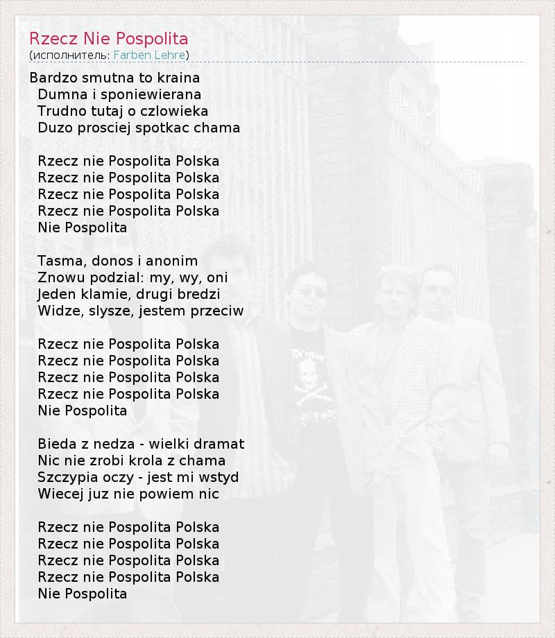 А как ты думаешь, о чем песня "Rzecz Nie Pospolita" ?