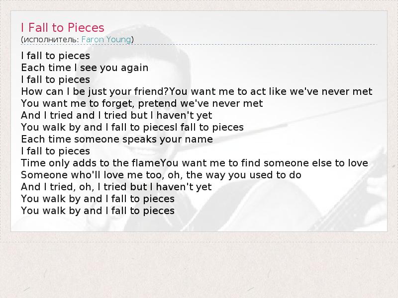 А как ты думаешь, о чем песня "I Fall to Pieces" ?