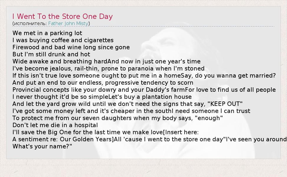 А как ты думаешь, о чем песня "I Went To the Store One Day" ?