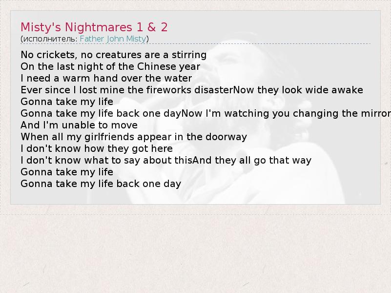 А как ты думаешь, о чем песня "Misty's Nightmares 1 & 2" ?