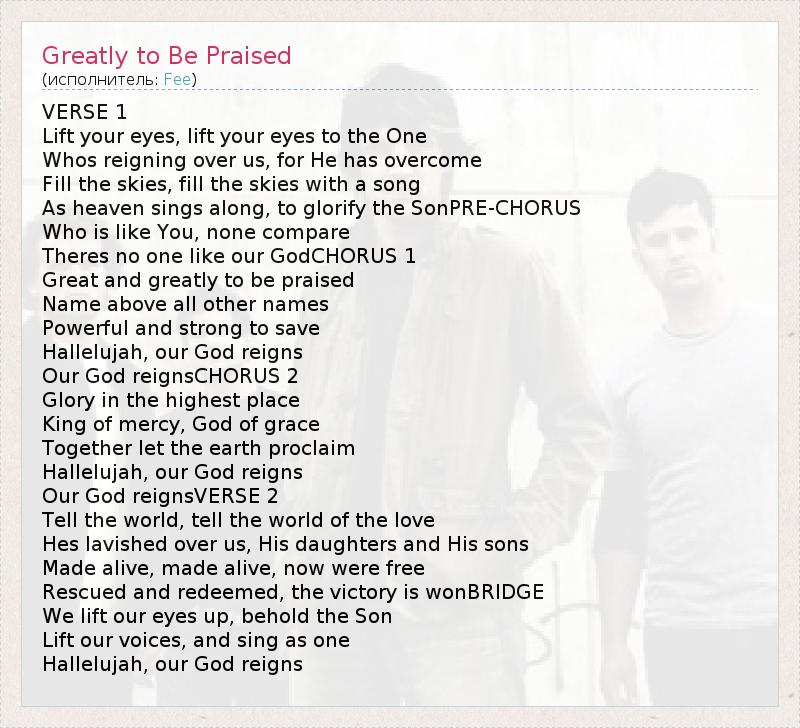 ГлавнаяИсполнителиFeeGreatly to Be Praised