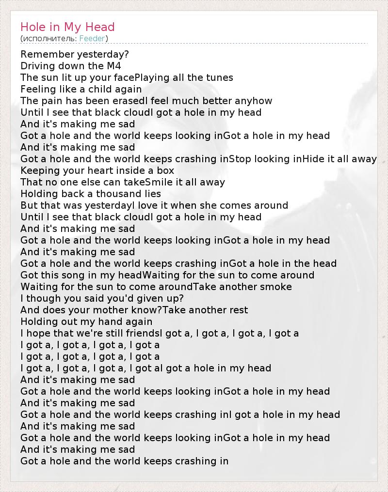 А как ты думаешь, о чем песня "Hole in My Head" ?