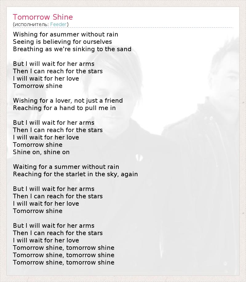 Tomorrow shine, tomorrow shine