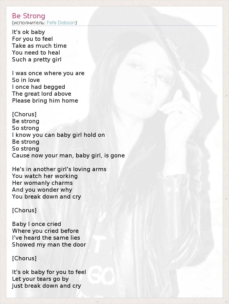 А как ты думаешь, о чем песня "Be Strong" ?