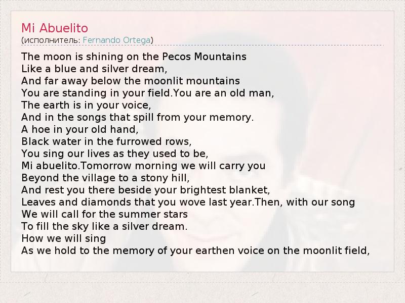 А как ты думаешь, о чем песня "Mi Abuelito" ?