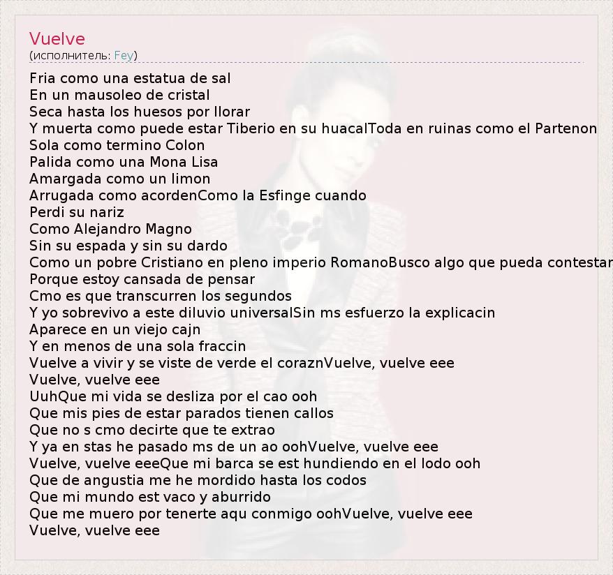 Y ya en stas he pasado ms de un ao oohVuelve, vuelve eee