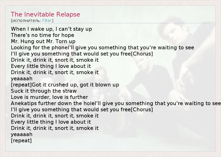 А как ты думаешь, о чем песня "The Inevitable Relapse" ?