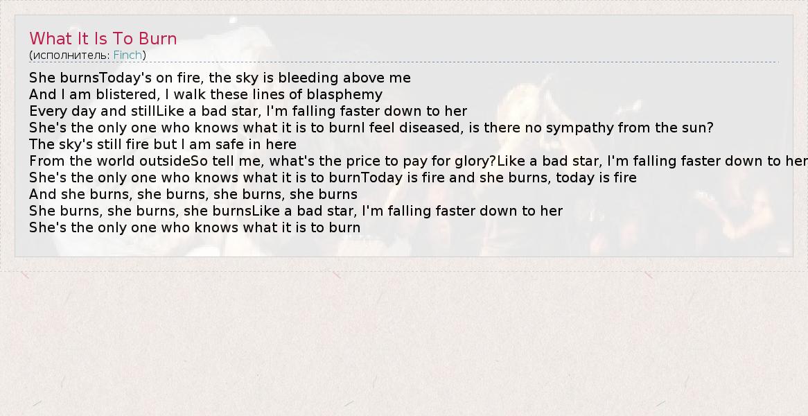 А как ты думаешь, о чем песня "What It Is To Burn" ?