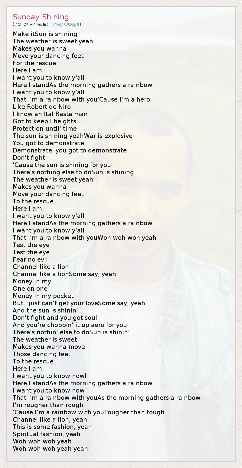 А как ты думаешь, о чем песня "Sunday Shining" ?