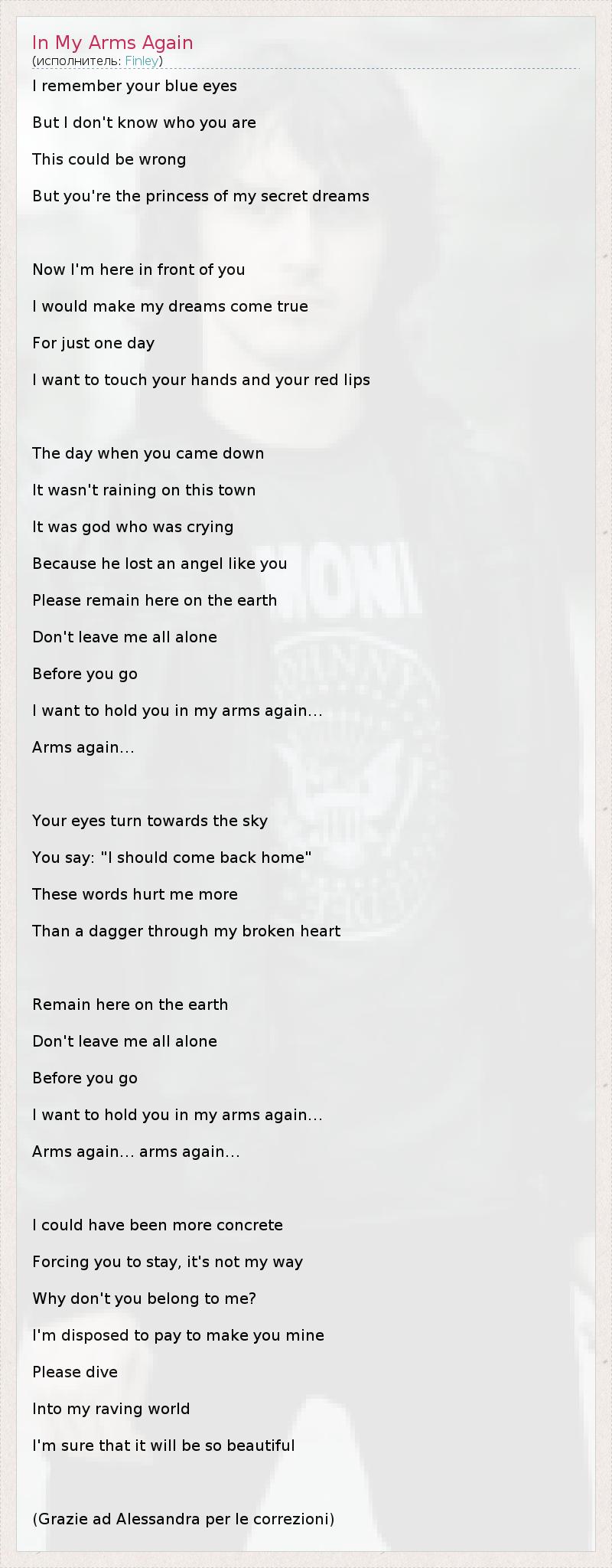 А как ты думаешь, о чем песня "In My Arms Again" ?