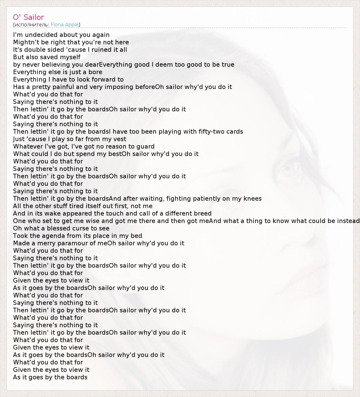 А как ты думаешь, о чем песня "O' Sailor" ?
