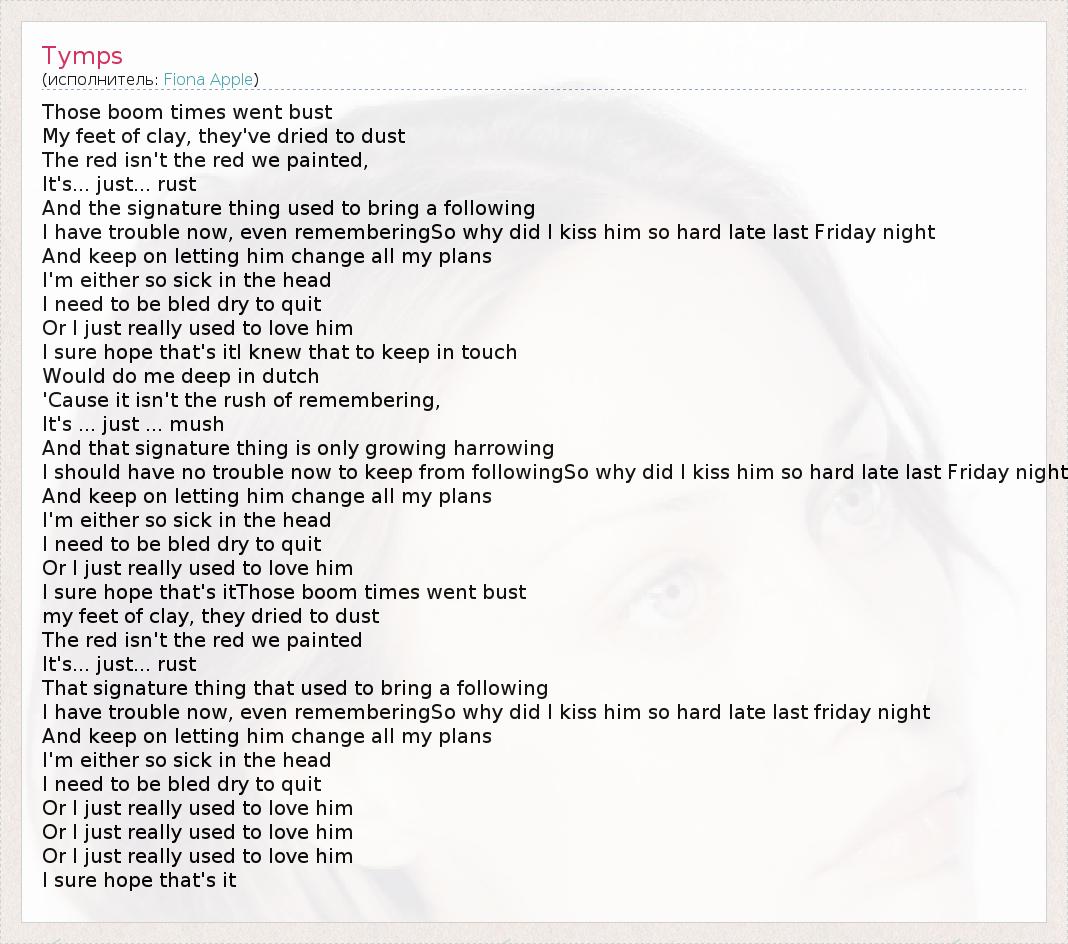 Это интересно:Фиона Эппл Мэггарт (Fiona Apple Maggart) родилась 13 сентября 1977 года в Нью-Йорке, в артистической семье. Ее отец ‒ звезда телесериалов, красавчик-актер Брэндон Мэггарт ‒ познакомился с ее мамой ‒ прекрасной поварихой, фитнес-тренером, танцовщицей, певицей и актрисой Дайэн МакЭфи на съемках одного мюзикла. У них были дети от предыдущих браков и в этом браке родились две девочки ‒ Фиона и ее сестра... продолжение