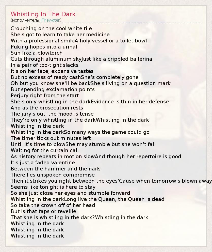 А как ты думаешь, о чем песня "Whistling In The Dark" ?