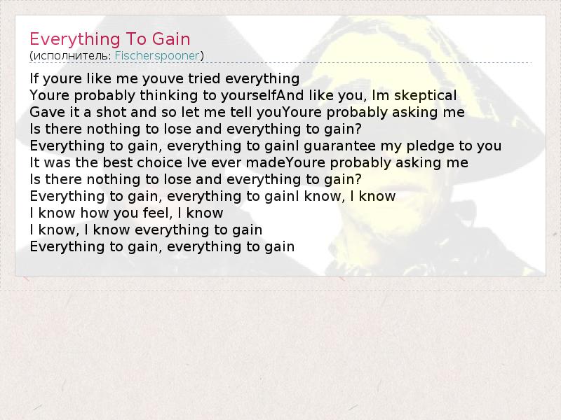 А как ты думаешь, о чем песня "Everything To Gain" ?