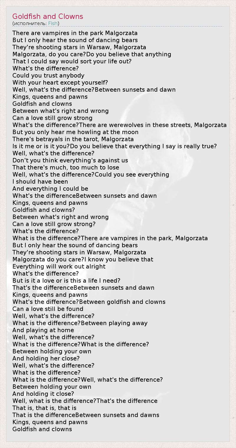 А как ты думаешь, о чем песня "Goldfish and Clowns" ?