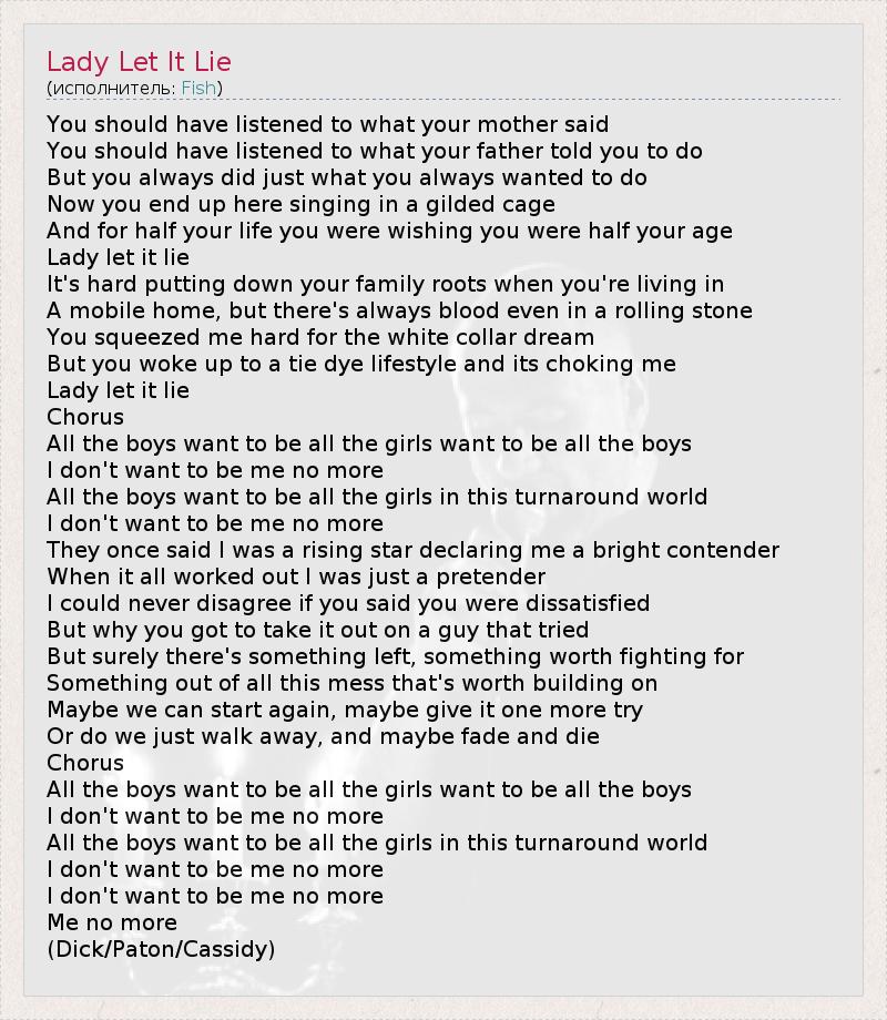 А как ты думаешь, о чем песня "Lady Let It Lie" ?