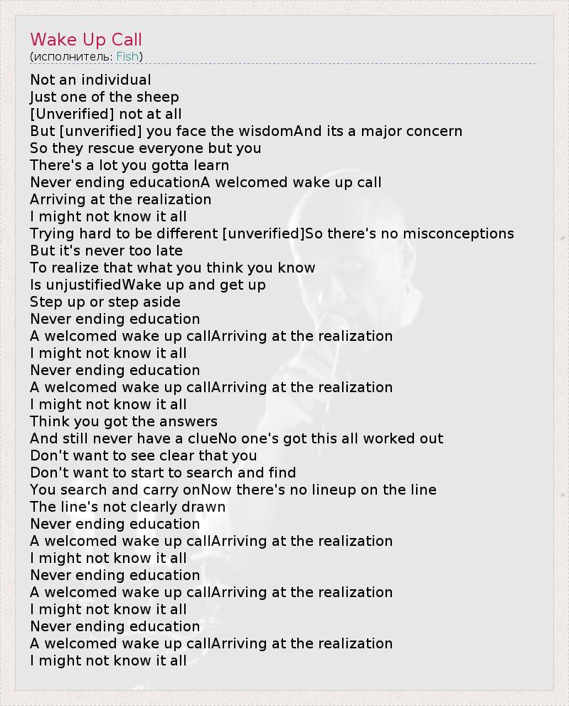 А как ты думаешь, о чем песня "Wake Up Call" ?