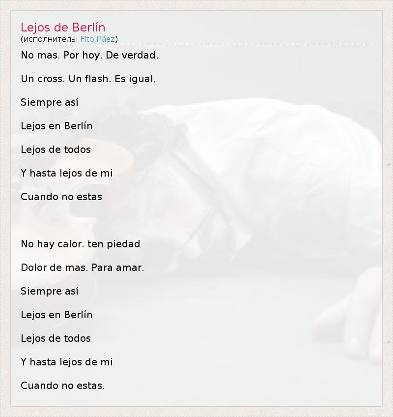 А как ты думаешь, о чем песня "Lejos de Berlín" ?