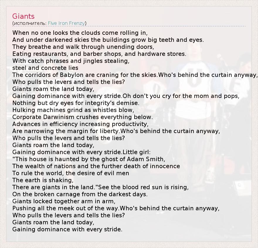 А как ты думаешь, о чем песня "Giants" ?