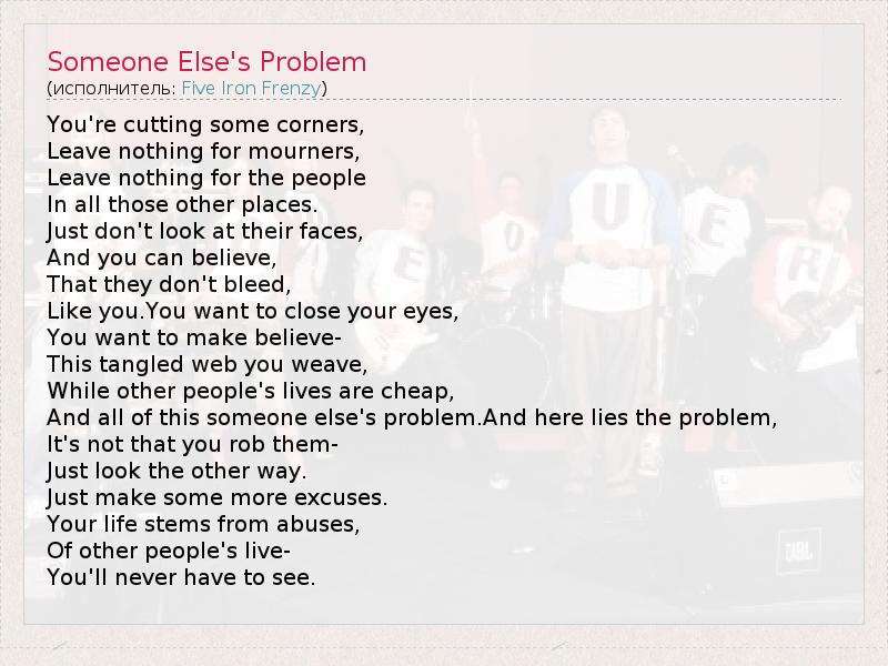 А как ты думаешь, о чем песня "Someone Else's Problem" ?