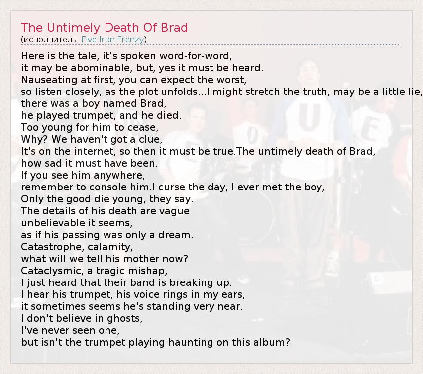 А как ты думаешь, о чем песня "The Untimely Death Of Brad" ?