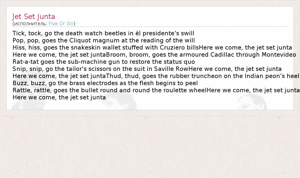 А как ты думаешь, о чем песня "Jet Set Junta" ?