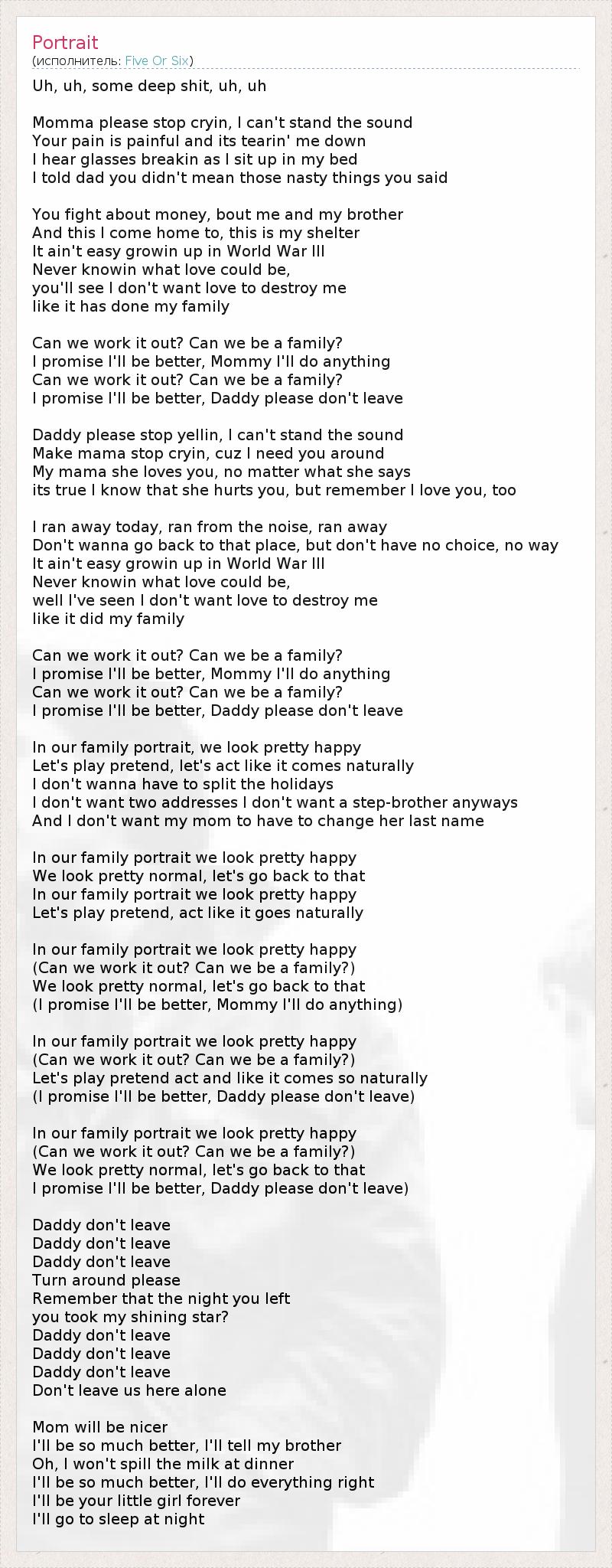 (Я обещаю, что стану лучше. Папочка, пожалуйста, не уходи.)