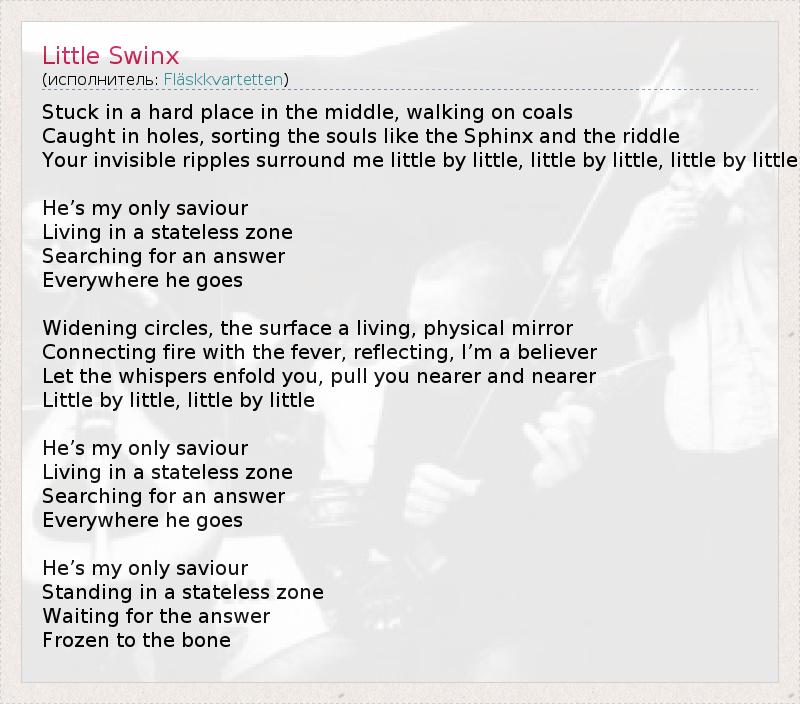 А как ты думаешь, о чем песня "Little Swinx" ?