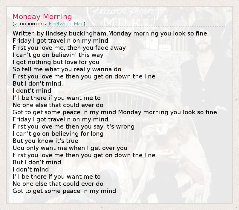 А как ты думаешь, о чем песня "Monday Morning" ?