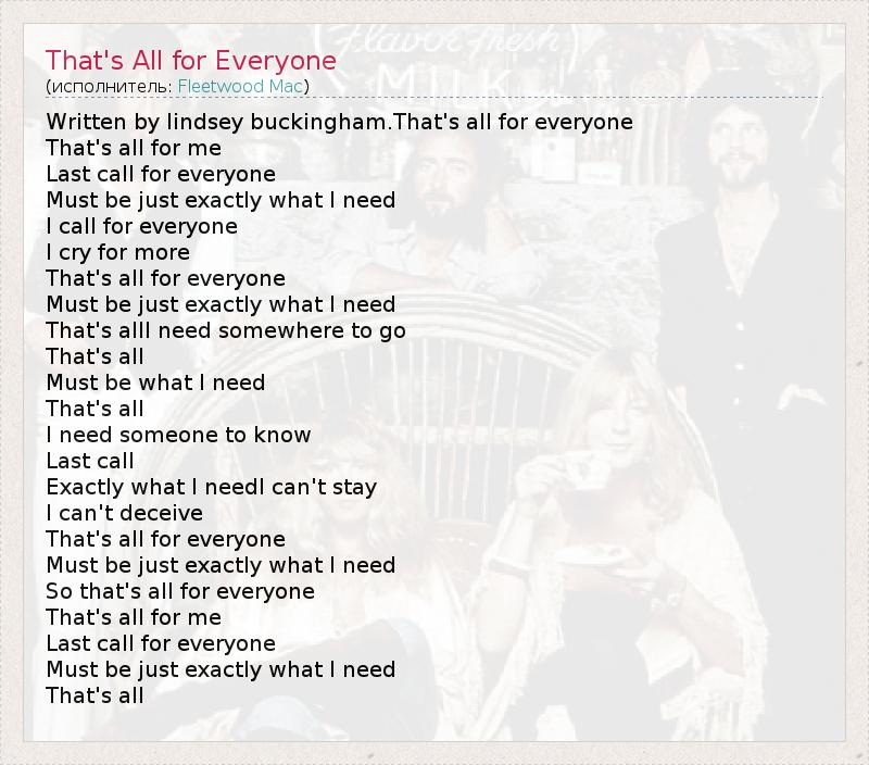 А как ты думаешь, о чем песня "That's All for Everyone" ?