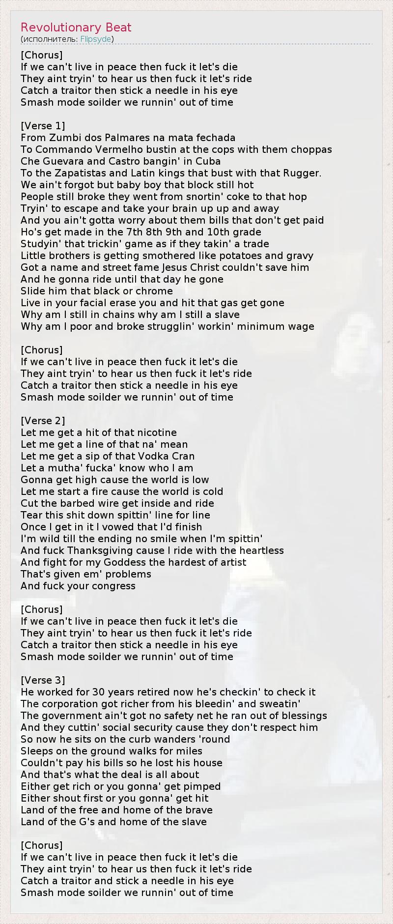 А как ты думаешь, о чем песня "Revolutionary Beat" ?