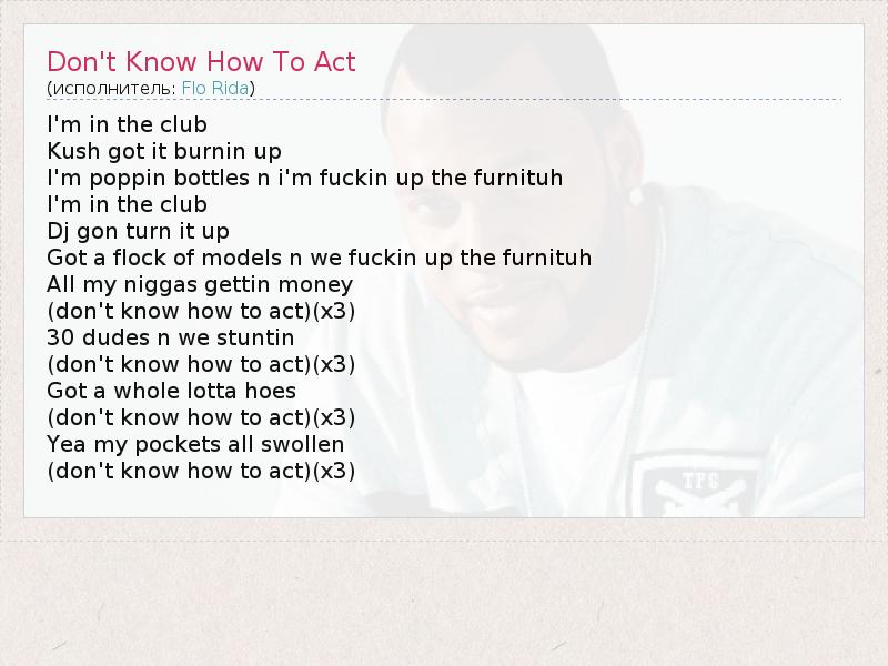 ГлавнаяИсполнителиFlo RidaDon't Know How To Act