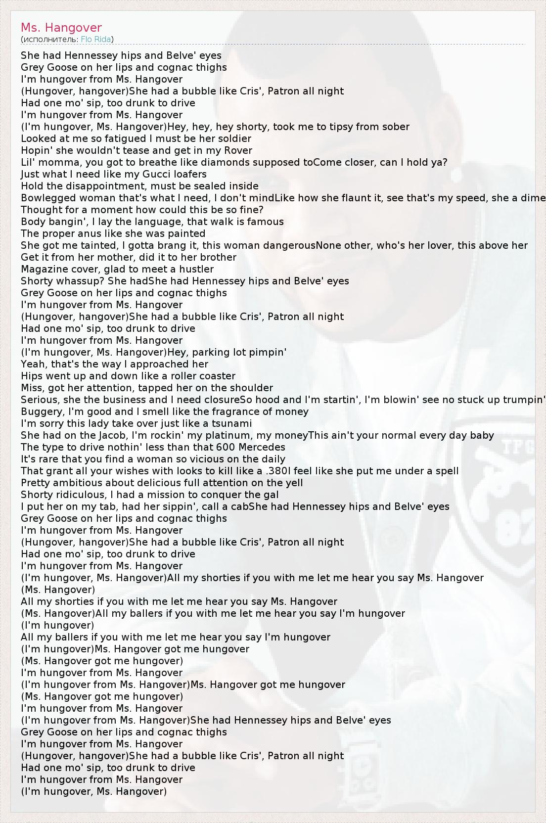 А как ты думаешь, о чем песня "Ms. Hangover" ?