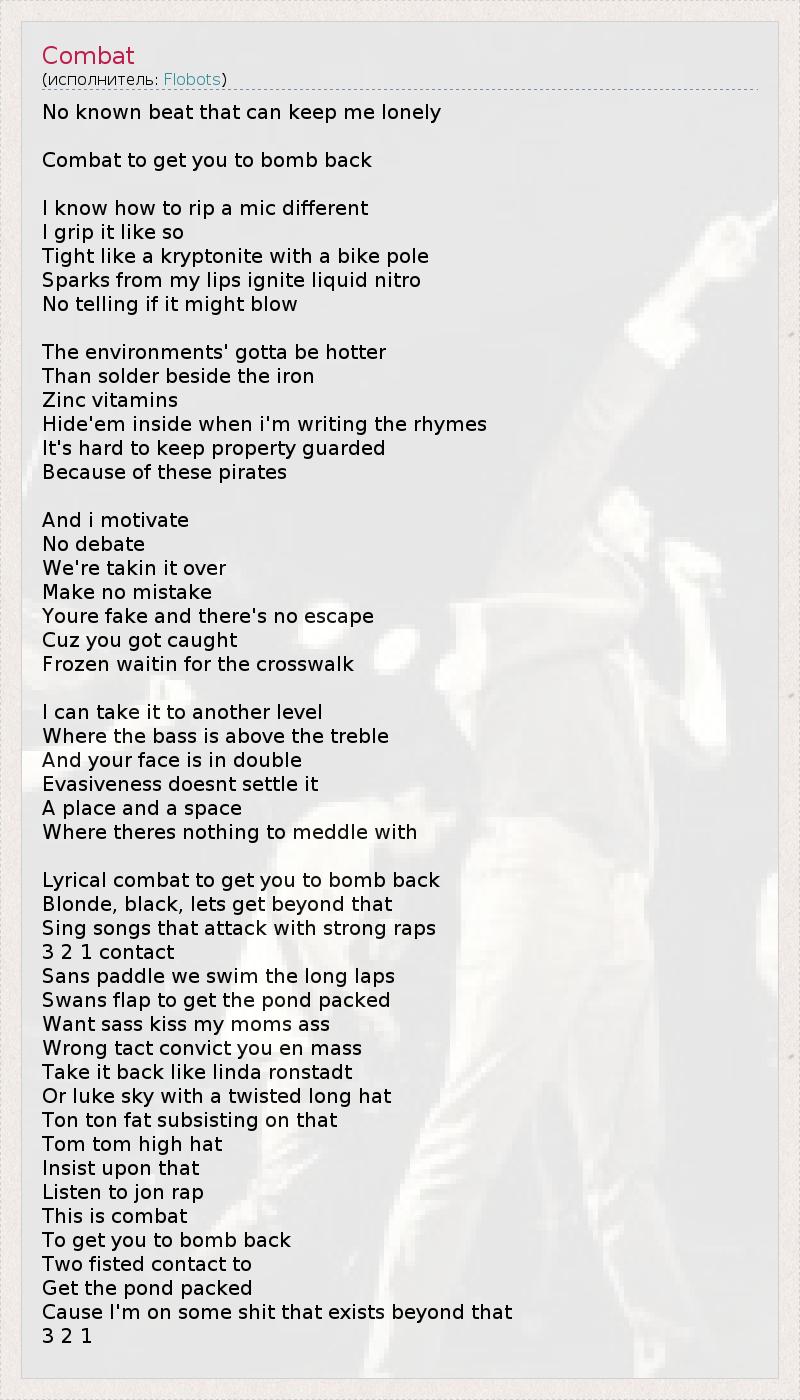 Это интересно:Flobots - американская группа из Денвера, Колорадо. Пятеро разноцветных мужчин и одна женщина играют альтернативный рок, щедро сдабривая его рэпом и фолком Альбом "Fight With Tools" – это третья полновесная работа коллектива и первая – на мейджоре. Старт на пятнадцатом месте Billboard был неплохим началом, а успех "Handlebars" на рок радиостанциях подкрепил его. Эта песня была записана три года... продолжение